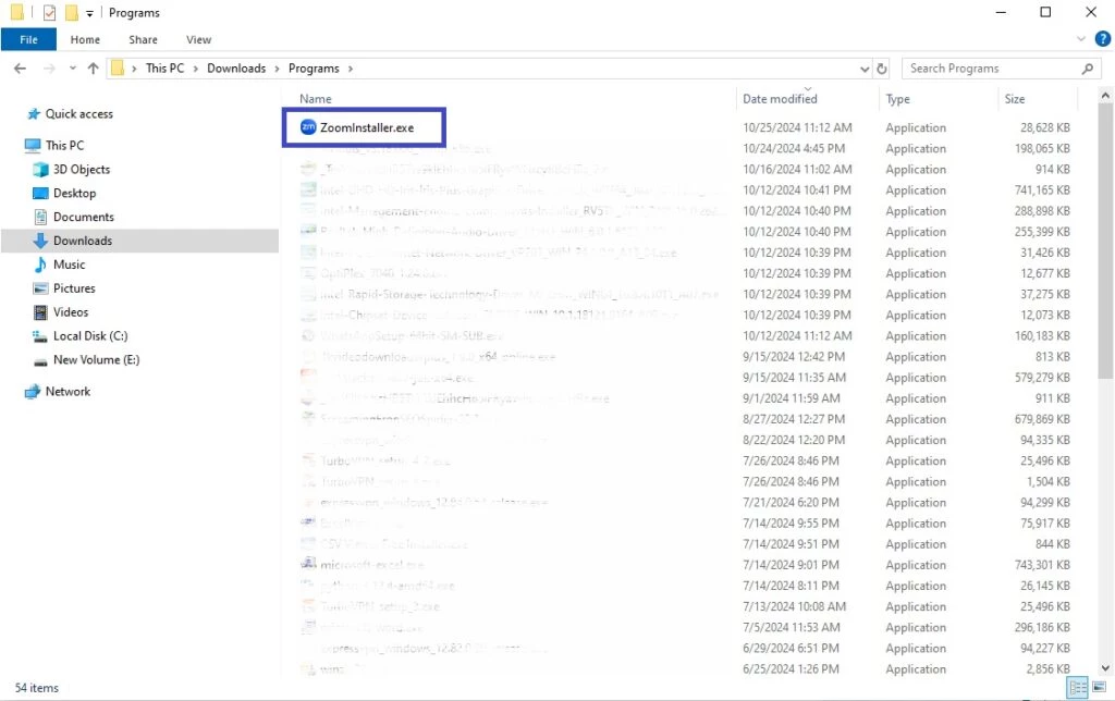 انقر على زر "تنزيل" في الصفحة، ثم نزّل ملف exe الخاص ببرنامج Zoom على جهازك. سيتم تنزيل ملف exe وحفظه في مجلد التنزيلات تلقائيًا. يمكنك أيضًا حفظه في مجلدك المفضل.